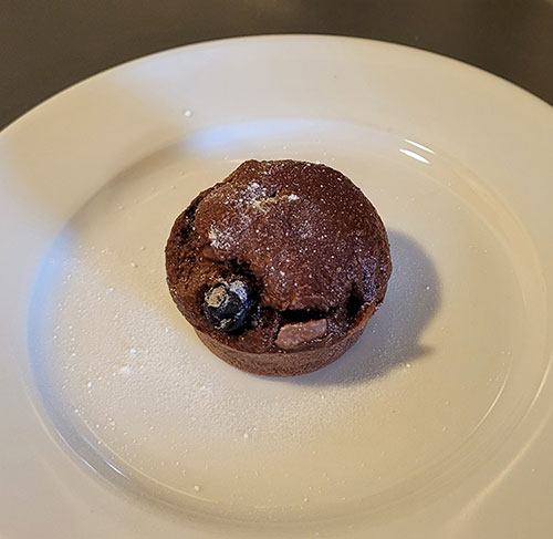 Die Menge ergibt insgesamt 12 Muffins. Es empfiehlt sich eine Silikonform zu verwenden um Öl einzusparen. Die fertigen Muffins können so leichter aus der Form gelöst werden. Zuerst die Haferflocken mit einem Mixer zu Mehl vermahlen. Anschließend alle trockene Zutaten vermischen. Dann die feuchte Zutaten vermischen und beides verrühren. Jetzt die Förmchen zur Hälfte mit Teig füllen und dann die Beeren und Schokoladenstücke darauf verteilen. Nun die Förmchen mit dem Rest des Teigs auffüllen und bei 180°C 17min backen. Die fertigen Muffins schmecken am besten warm und können zur Dekoration mit Puderzucker bestreut werden.
