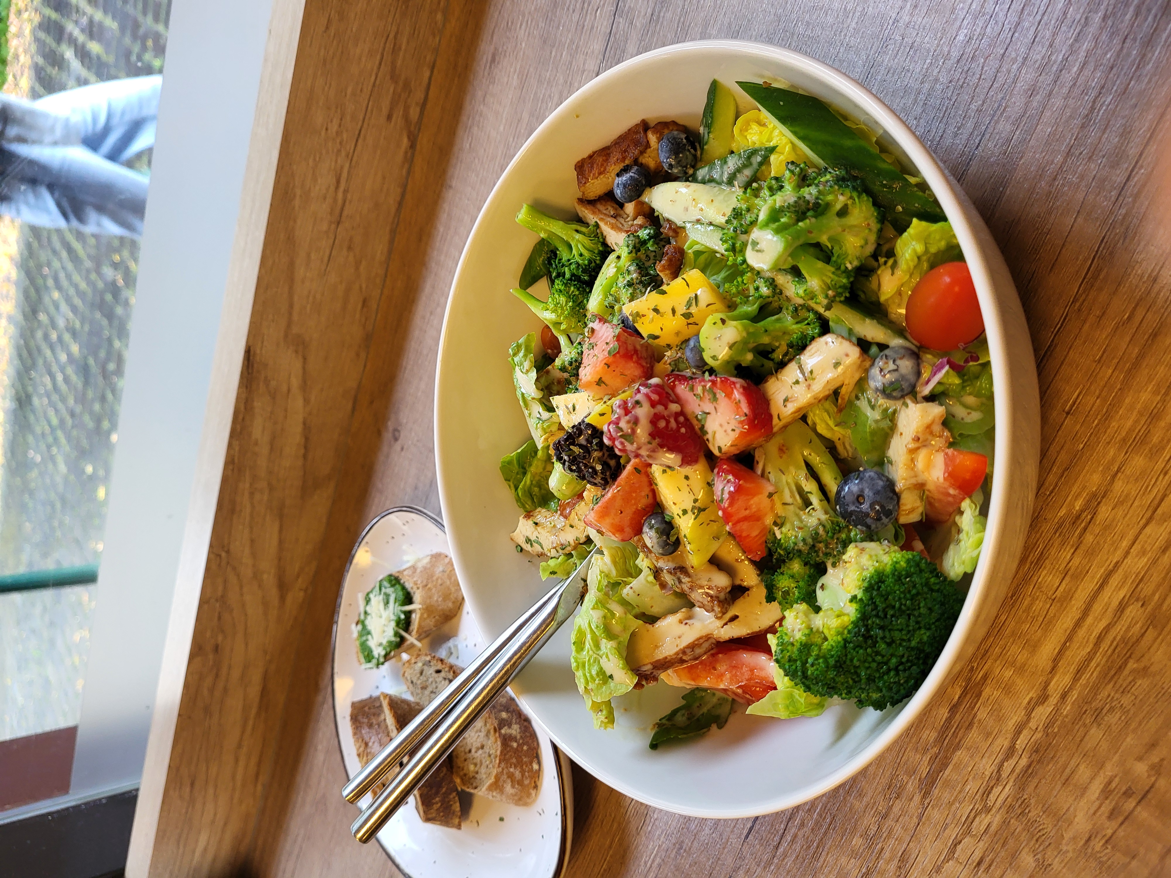 Zutaten: Salatherzen, Salatgurke, Paprika, Tomaten, Erdbeeren, Brombeeren, Heidelbeeren, Mango